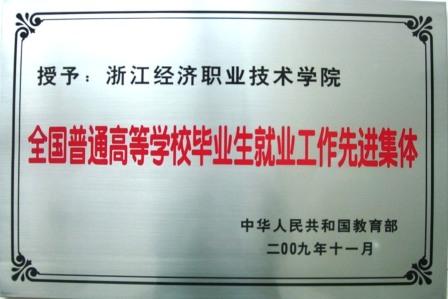 11月20日,教育部召开2010年全国普通高校毕业生就业工作网络视频会议。会上,教育部部长助理、党组成员林蕙青宣读《教育部办公厅关于通报表扬全国普通高等学校毕业生就业工作先进集体和先进个人的通知》(教学厅〔2009〕11号),《通知》对129个全国普通高校毕业生就业工作先进集体和219名先进个人进行通报表扬。在先进集体名单中,我校榜上有名,浙江省共有四家高校获得该项荣誉。