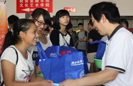 今年,我校扩大资助范围,增加资助金额,共为56名家庭经济特别困难新生准备了总价值4万元的爱心大礼包。根据学生家庭实际情况,礼包分为1000元和500元两档,包括生活用品、励志图书和生活费。爱心大礼包切实解决了家庭贫困学生进大学之门的“最后一公里”困难,使他们能够免于后顾之忧,安心学习,奋发图强。在报到现场,副院长应智国还亲手为新生送上爱心大礼包,并予以鼓励。