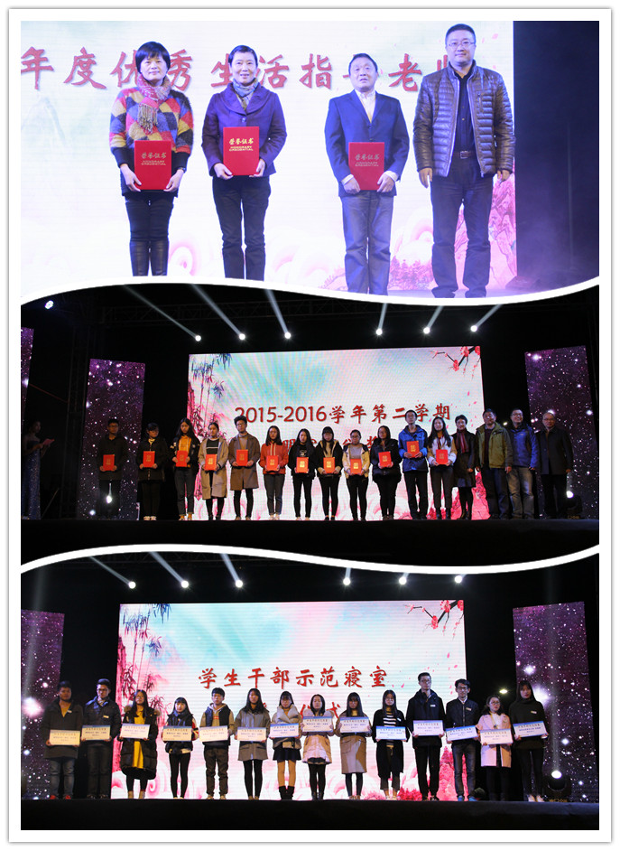 父爱如山,师恩莫忘,优秀生活指导老师颁奖仪式更是对我校所有生活指导老师辛勤付出的感谢;创建文明寝室环境,展现良好寝室风貌,通过对12个文明寝室的颁奖表彰,鼓励学生多多参与到经院文明寝室建设行列中;重品行,做表率,14个首批学生干部文明示范寝室授牌仪式启动了“打造文明示范寝室,展现经院学子风采”工程,希望有更多的学生干部能加入到争创文明寝室的行列中,发挥好榜样作用。