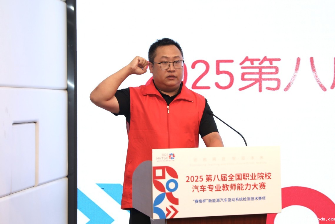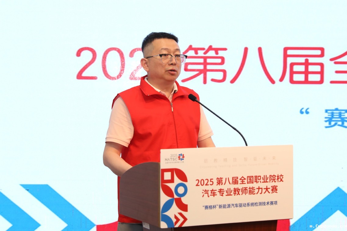 楼志刚代表主办方致辞,他表示当前我国新能源汽车产销量全球第一,但在核心技术领域仍需突破卡脖子难题。教师作为教育教学的核心力量,其职业能力至关重要。本次大赛作为我国职业教育专业领域最具影响力的赛事之一,在赛项设置和考核机制等方面实现全方位升级,同时,依托杭州产业集群与院校教育优势,聚焦产教融合,将有效推动双师型教师培养与产业需求精准对接。最后,他提出三点希望:一是将行业标准融入课程体系,紧跟产业前沿;二是依托产业集群共建实训基地,开发“岗课赛证”融通资源;三是践行赛事主题,钻研技术,协同创新应对产业变革。