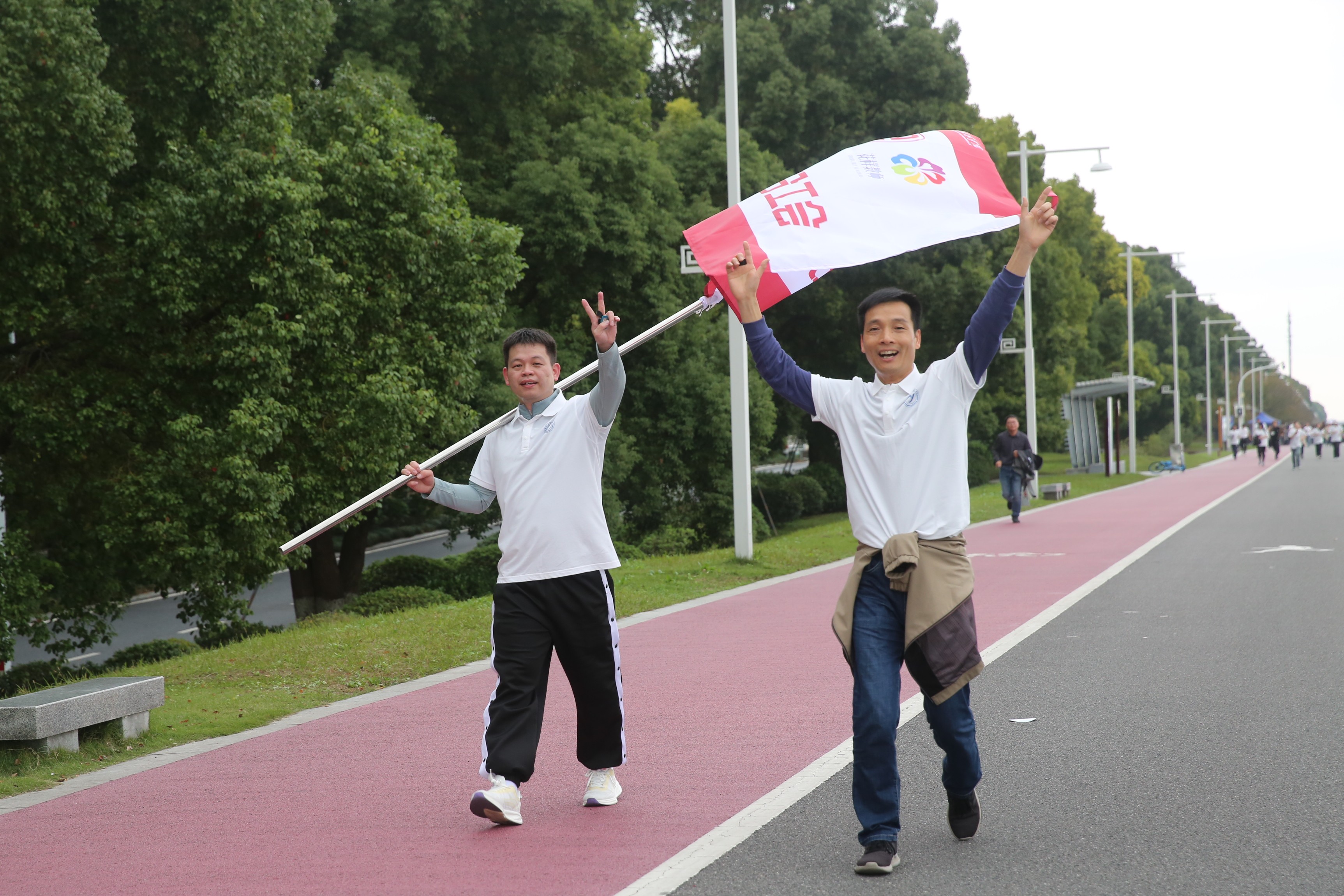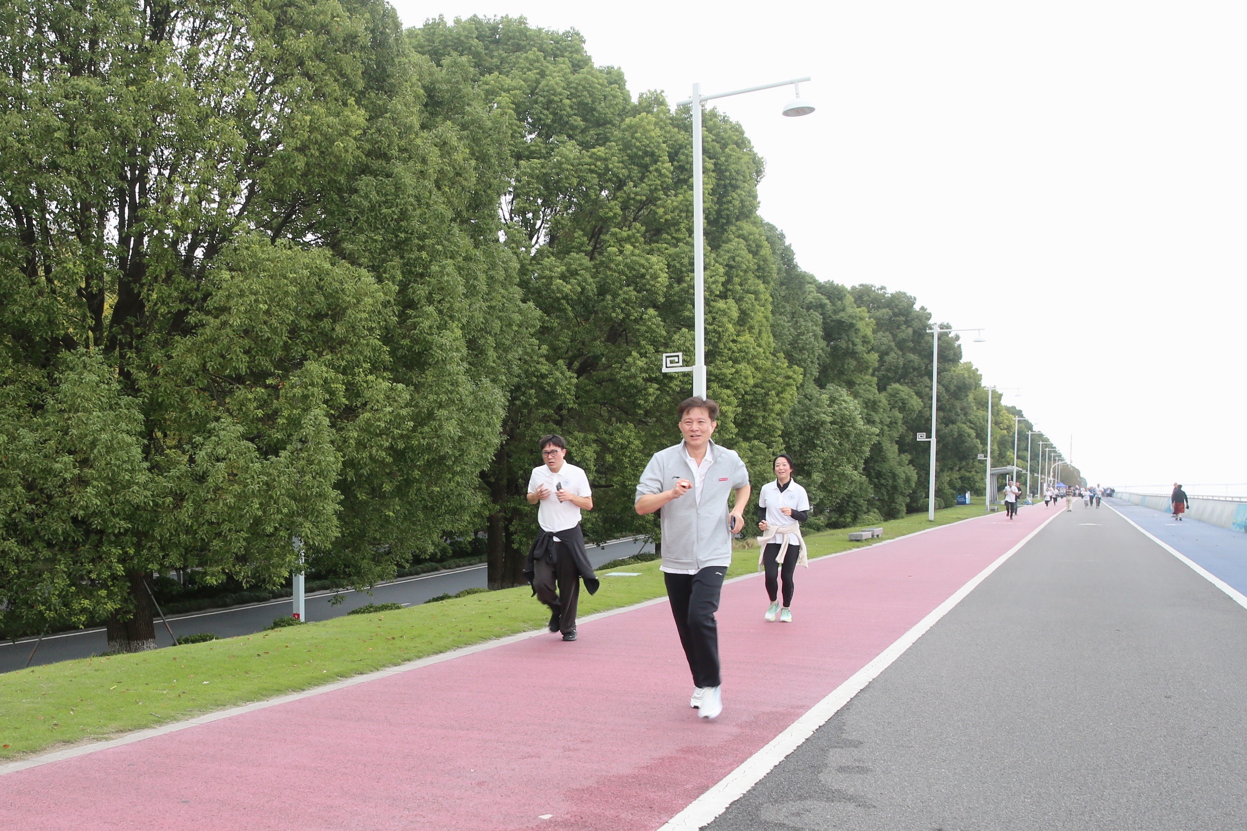 吕红刚宣布活动开始,教职工们精神抖擞地沿江而行,在秋日美景中畅享运动乐趣,在欢声笑语中增进情谊,展现出“经院人”团结协作、积极向上的良好风貌。