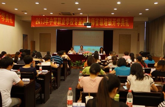 我校成功承办2013年中等职业学校专业课教师教学研修培训 7月5日,2013年中等职业学校专业课教师教学研修省级培训在我校开班,52名来自省内各中职院校的老师参加了此次培训。本次培训共计12天,分为商务英语、文秘、物流管理三个专业,主要采取公共课、专业课和外出调研交流等方式进行。学校党委副书记、副院长邵庆祥,成人教育学院副院长孔丽娟、综合办公室主任张剑玲出席开学典礼...