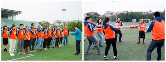 参观完实训室,校友们在操场举行素拓活动。通过一场场游戏,校友们仿佛找回了年轻时的自己,天真烂漫、生动活泼,对未来充满无限的向往……多希望时间就定格在此刻,让年轻的自己在蓝天白云下尽情地散放光彩。